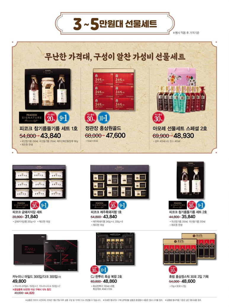 정관장 홍참원 골드 50ml * 30포 구성제품 35,000원 3개 구매시 1개 더 증정!!상기 홍삼진보보다 양이 많지만 가격은 20%이상 저렴하네요 같은 6년근 홍삼인데 말이죠^^;원액이 더 들어가느냐의 차이일 수도 있지만, 보충제를 선물하시겠다면 그냥 홍삼진봉 멋있어 보이도록 구입하시는 것을 추천^^